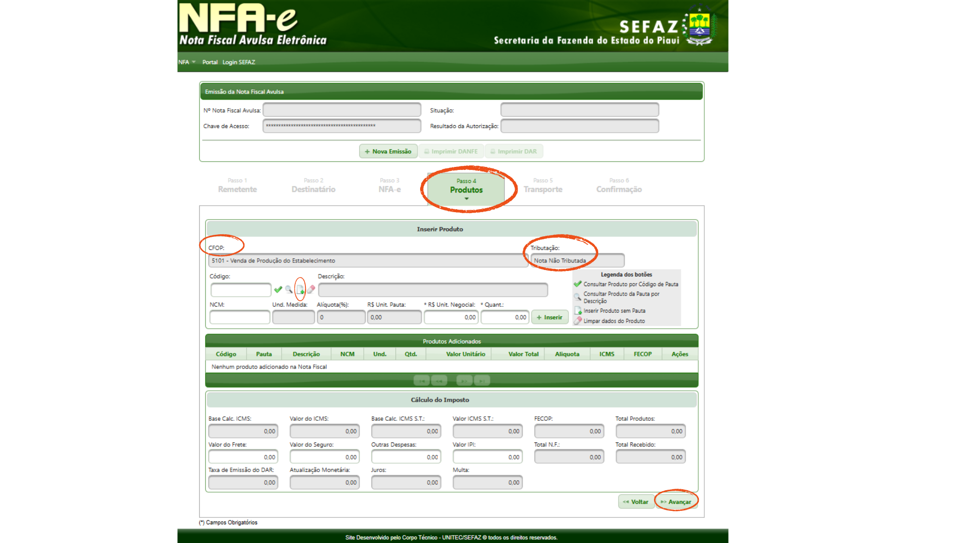 • Clicar no item “Inserir Produto sem Pauta” e → Avançar;