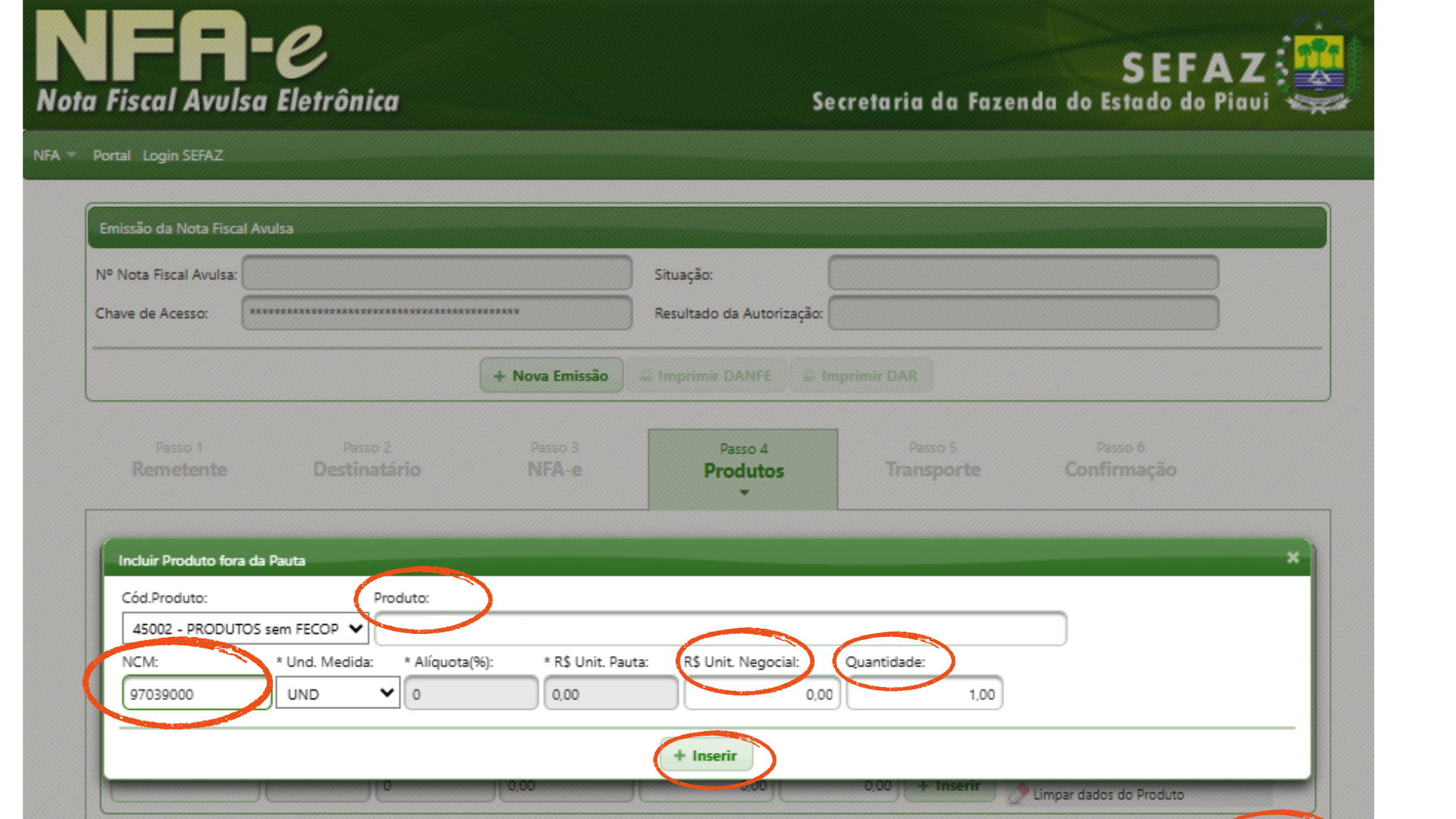 • Clicar no item “Inserir Produto sem Pauta” e → Avançar;