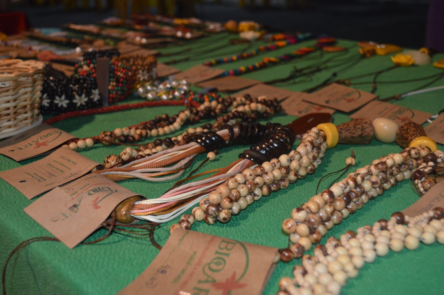 As biojoias são produzidas a partir de elementos naturais como sementes, fibras e madeiras, transformando recursos da natureza em acessórios que unem identidade cultural, criatividade e sustentabilidade. A técnica valoriza o uso consciente de matérias-primas e fortalece o artesanato como alternativa de geração de renda.